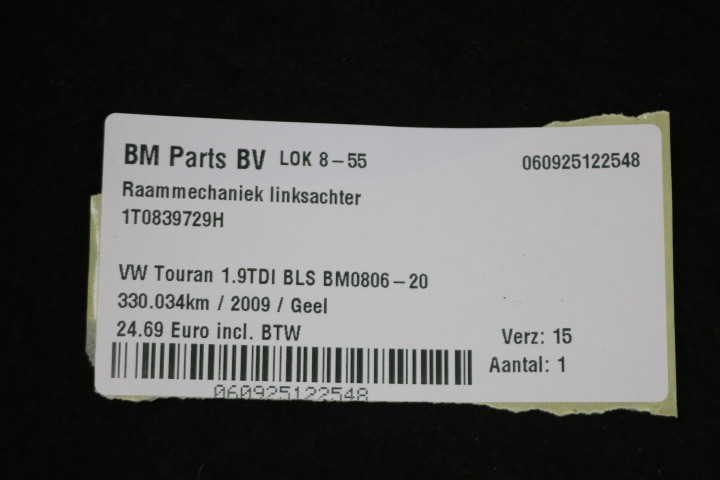 Raammechaniek linksachter VW Touran 1T