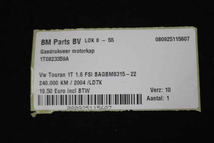 Gasdrukveer motorkap VW Touran 1T