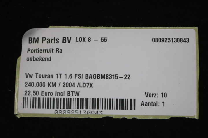 back / Exterieur / Wissers & Ruiten / Portier / Portierruit RA VW Touran 1T