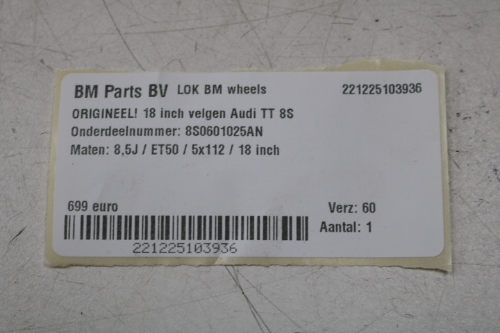 NIEUW! ORIGINEEL! 18 inch velgen Audi TT 8S! 8S0601025AN