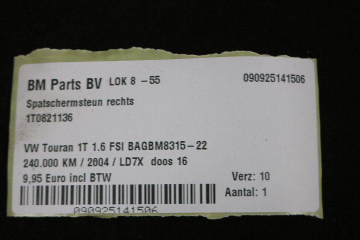 Terug / Exterieur / Plaatwerk / Steun / Spatschermsteun rechts VW Touran 1T