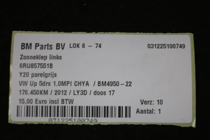 Zonneklep links VW Up! 5drs