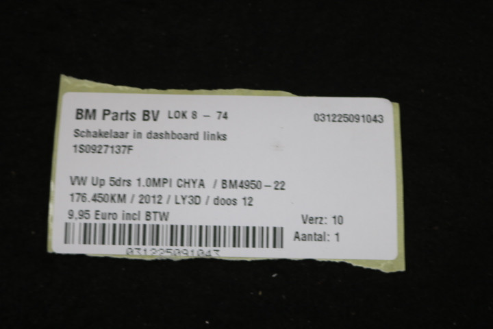 Schakelaar in dashboard links VW Up! 5drs
