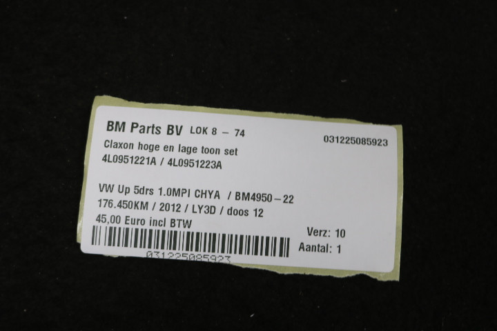 Claxon hoge en lage toon VW Up! 5drs