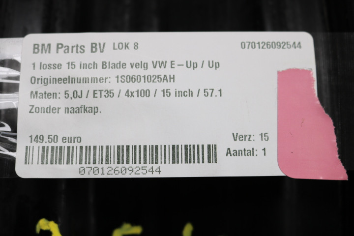 ORIGINEEL! 1 losse 15 inch Blade velg VW E-Up / Up! 1S0601025AH