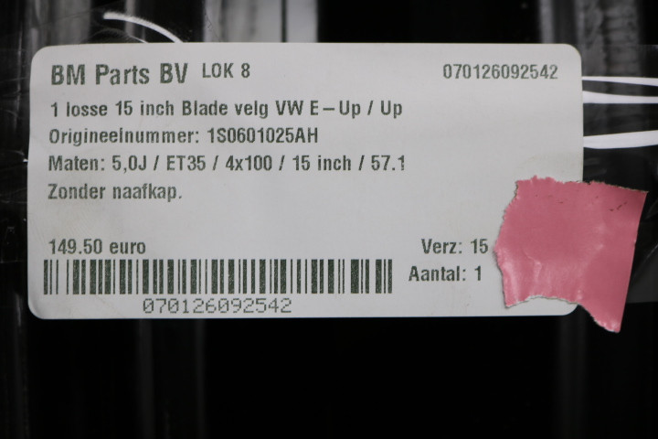 ORIGINEEL! 1 losse 15 inch Blade velg VW E-Up / Up! 1S0601025AH