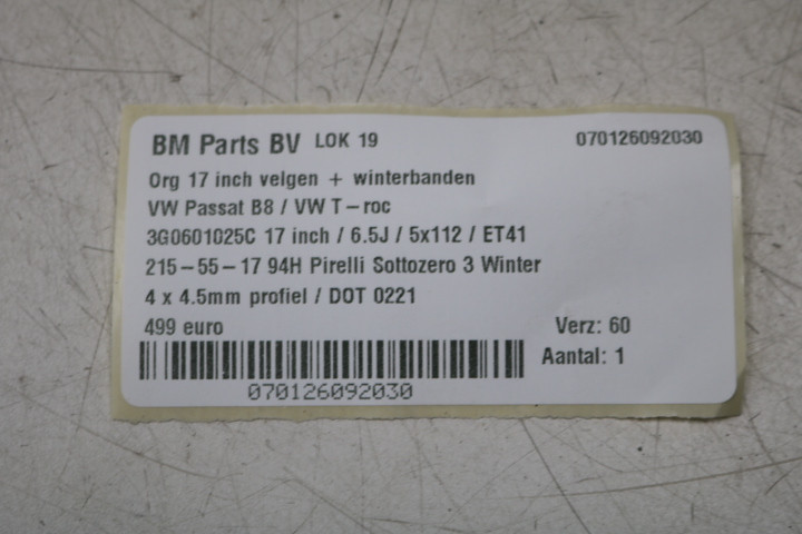 WINTER! ORIGINEEL! 17 inch Helsinki velgen VW Passat B8! 3G0601025C