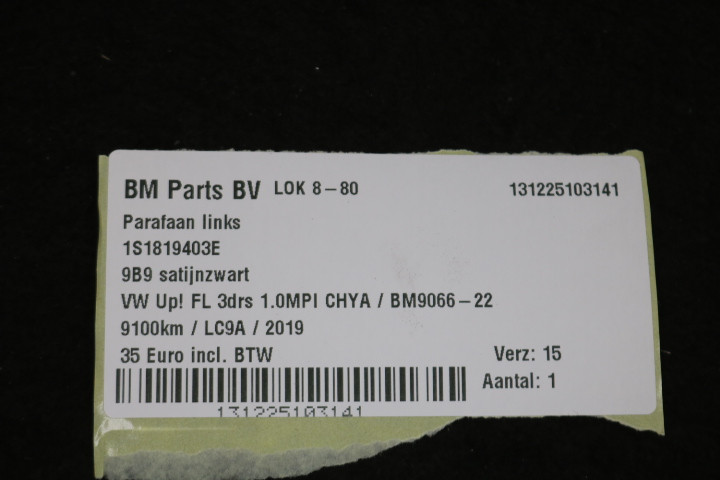 Terug / Exterieur / Kunststof Onderdelen / Parafaan links VW Up! FL 3drs