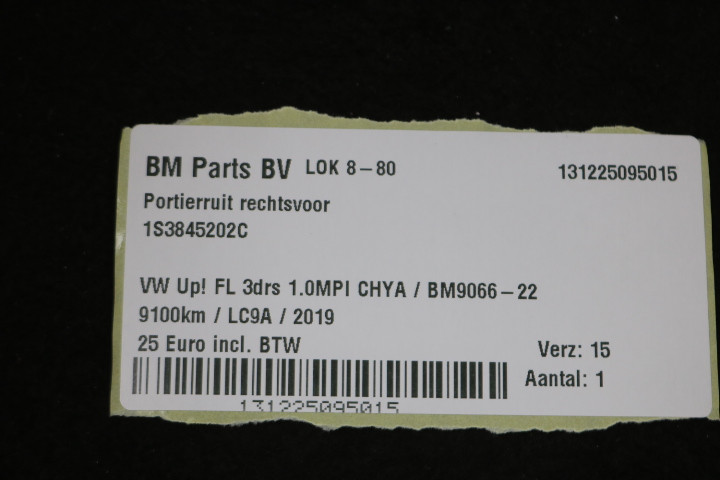 Portierruit rechtsvoor VW Up! FL 3drs
