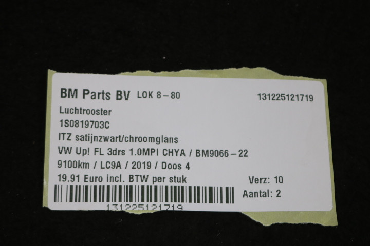 Luchtrooster VW Up! FL 3drs