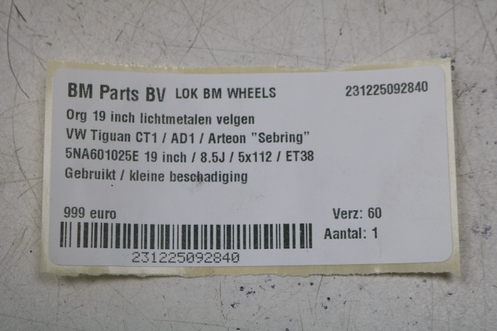 ORIGINEEL! 19 inch Sebring velgen VW Tiguan 5NA! 5NA601025E