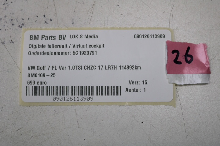 Digitale tellerunit / Virtual cockpit VW Golf 7 FL