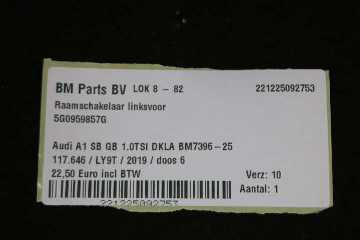 Raamschakelaar linksvoor Audi A1 GB