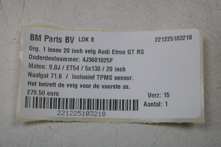 NIEUWSTAAT! ORIGINEEL! 1 losse 20 inch velg Audi Etron GT RS! 4J3601025F