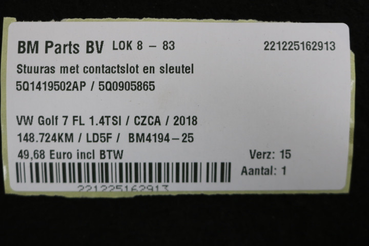 Stuuras met contactslot en sleutel VW Golf 7 FL