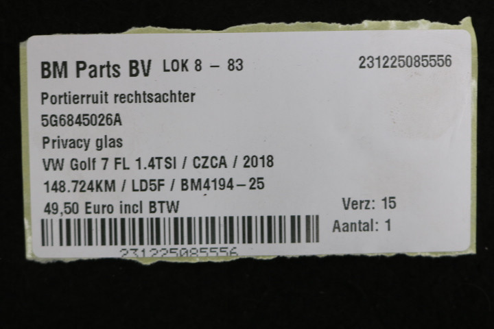 Portierruit rechtsachter VW Golf 7 FL