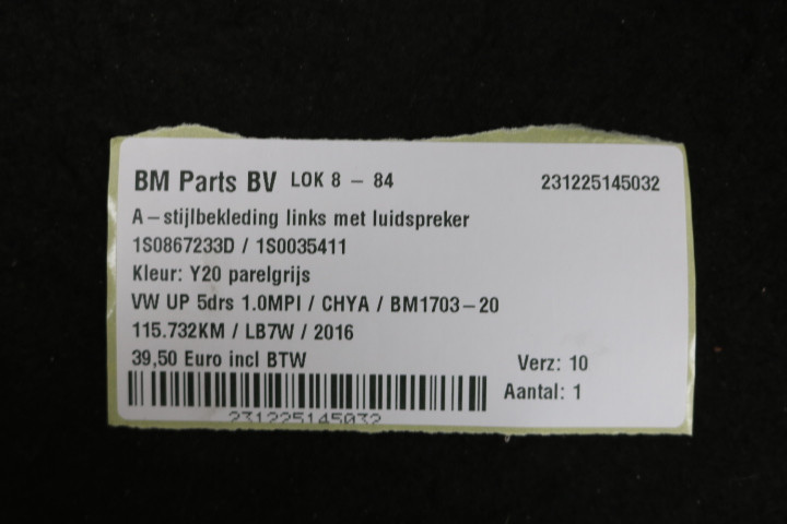 A-stijlbekleding Links met luidspreker VW Up!