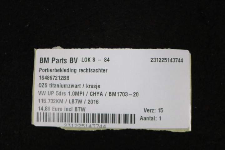 Terug / interieur / Losse Interieurdelen / Deur Panelen / Portierbekleding rechtsachter VW Up!
