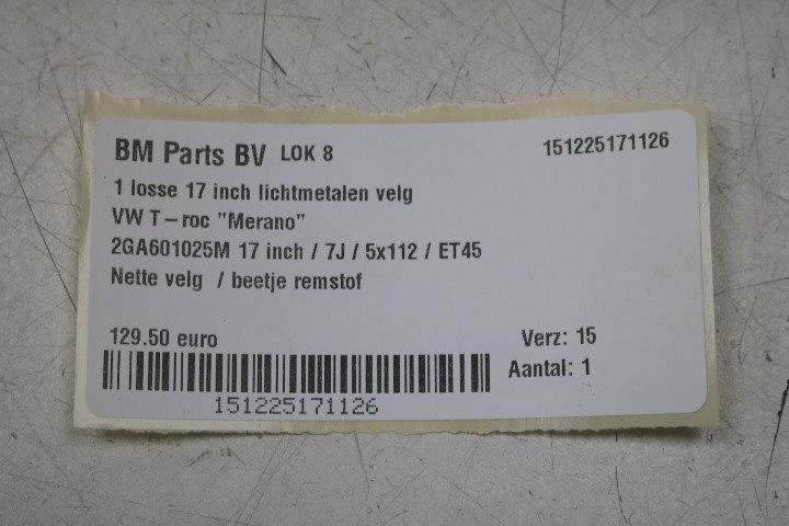 ORIGINEEL! 1 losse 17 inch Merano velg VW T-Roc! 2GA601025M
