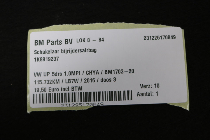 Schakelaar bijrijdersairbag VW Up!