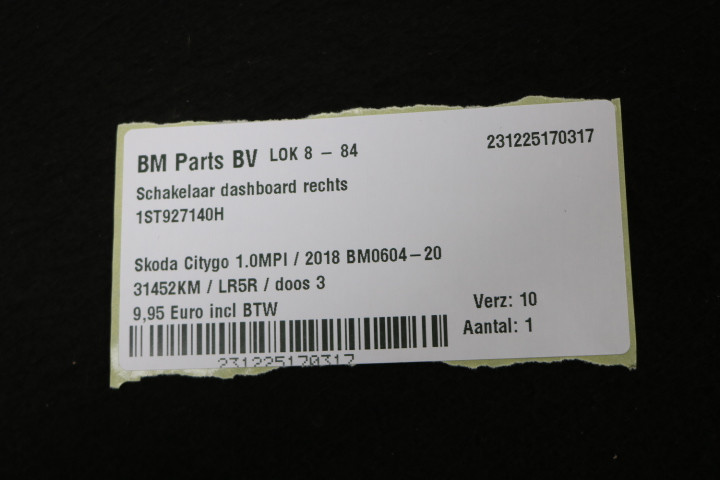 Schakelaar dashboard rechts Skoda Citigo
