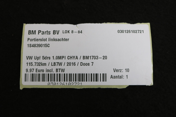 Portierslot linksachter VW Up! 5drs