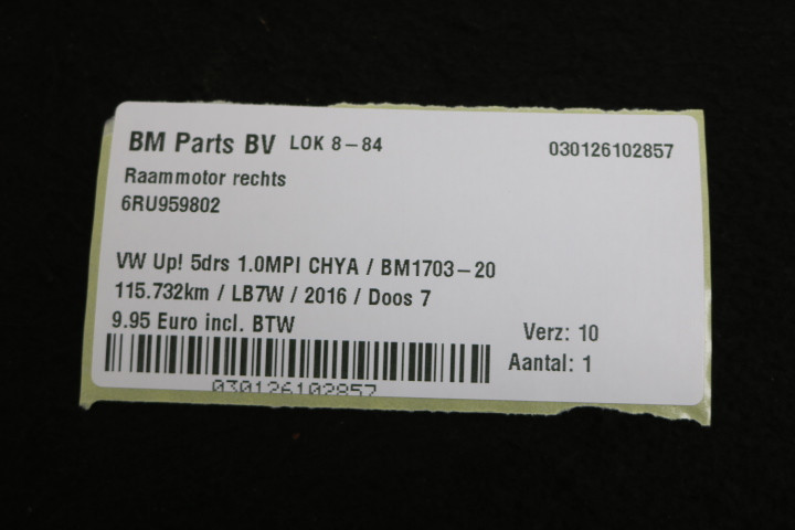 Raammotor rechts VW Up! 5drs