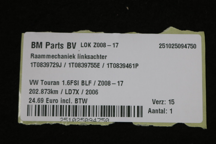 Raammechaniek linksachter VW Touran 1T