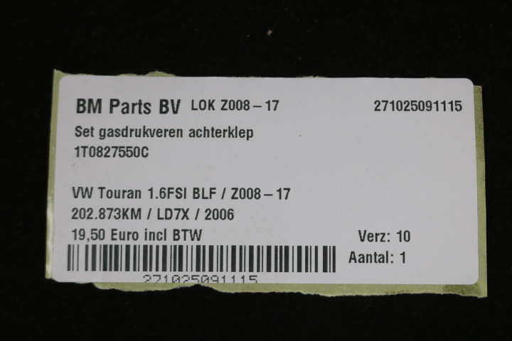Set gasdrukveren achterklep VW Touran 1T