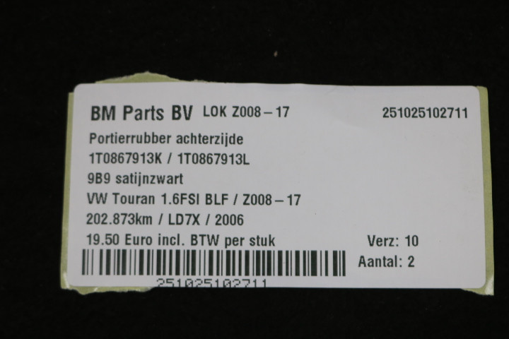 Portierrubber achterzijde kan L en R VW Touran 1T