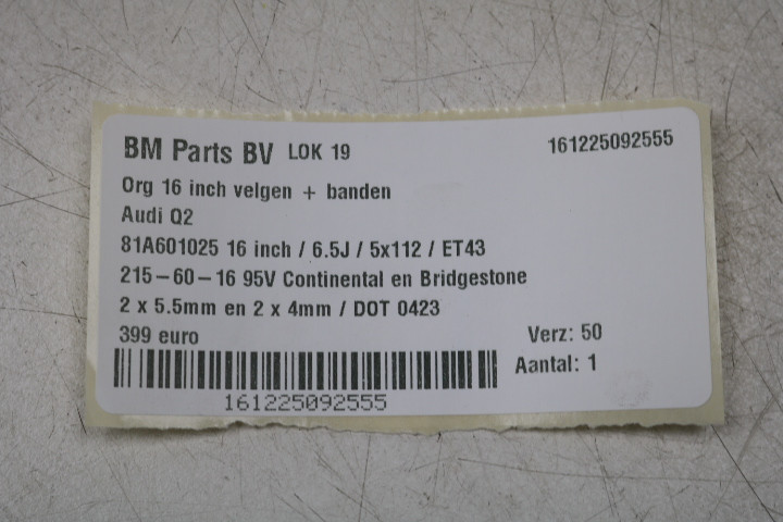 • Maten: 6,5J / ET43 / 5x112 / 16 inch