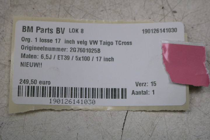 NIEUW! ORIGINEEL! 1 losse 17 inch R-Line velg VW Taigo T-Cross! 2G7601025B
