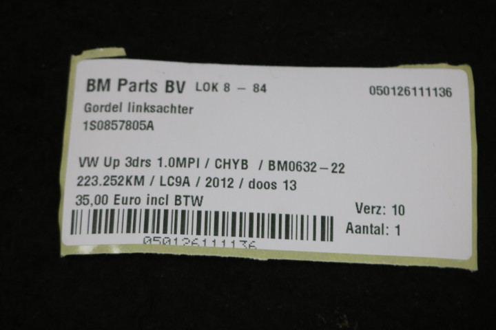 Gordel linksachter VW UP!