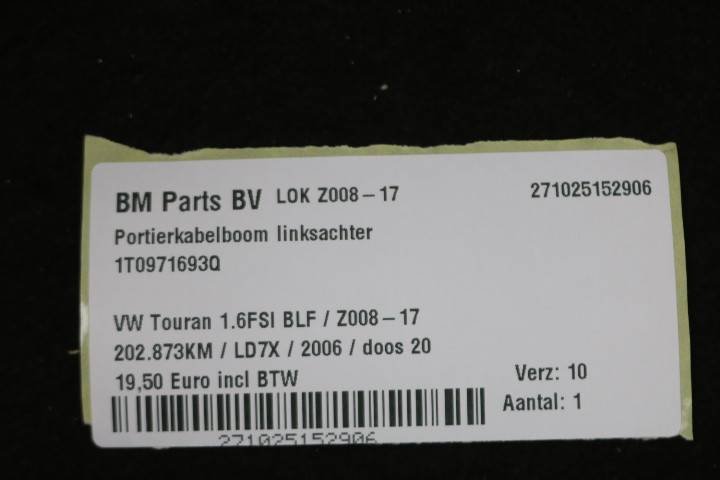 Portierkabelboom linksachter VW Touran 1T