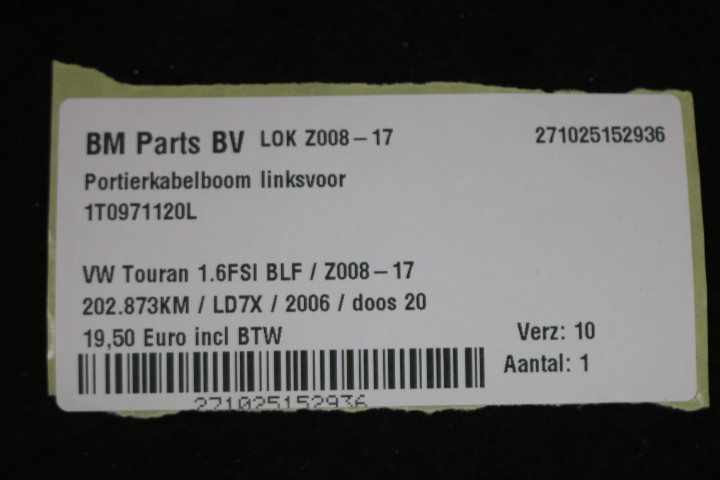 Portierkabelboom linksvoor VW Touran 1T