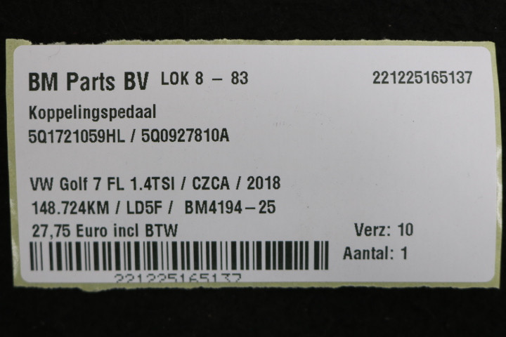 Koppelingspedaal VW Golf 7 FL