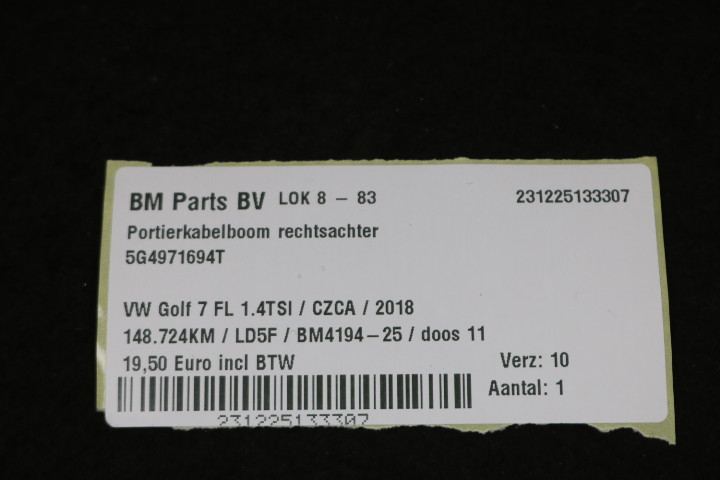 portierkabelboom rechtsachter VW Golf 7 FL