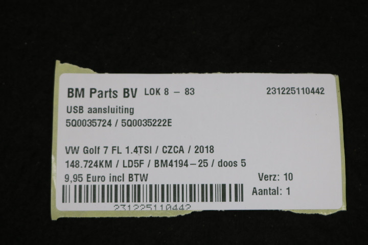 USB aansluiting VW Golf 7 FL