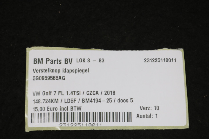 Verstelknop klapspiegel VW Golf 7 FL