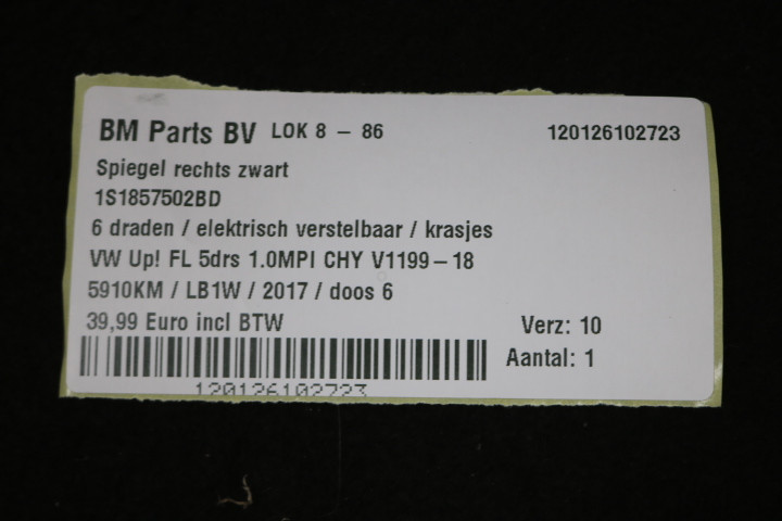 Spiegel rechts zwart VW Up! FL