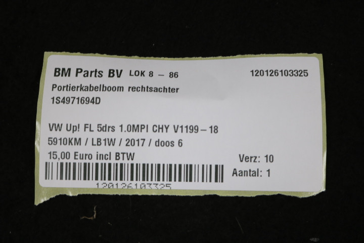 Portierkabelboom rechtsachter VW Up! FL