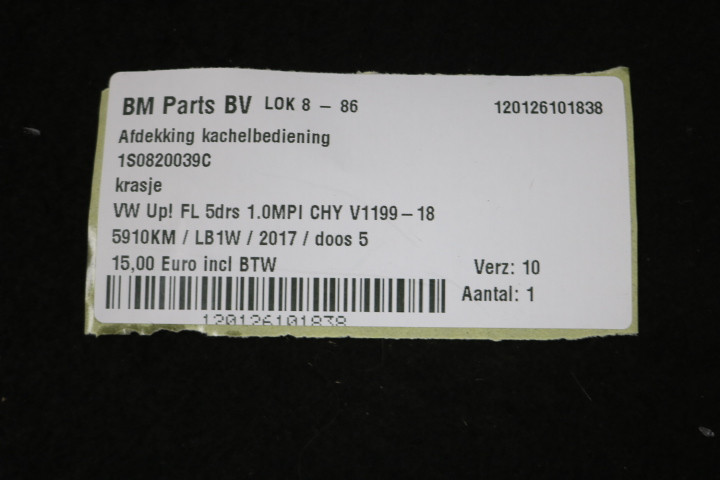 Afdekking kachelbediening VW Up! FL