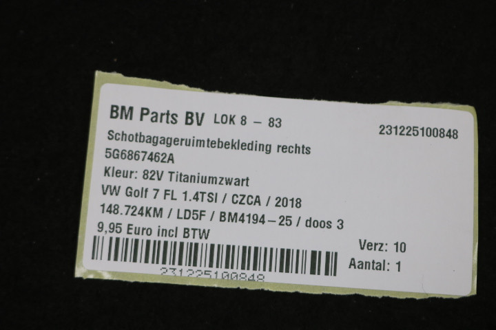 Schotbagageruimtebekleding rechts VW Golf 7 FL