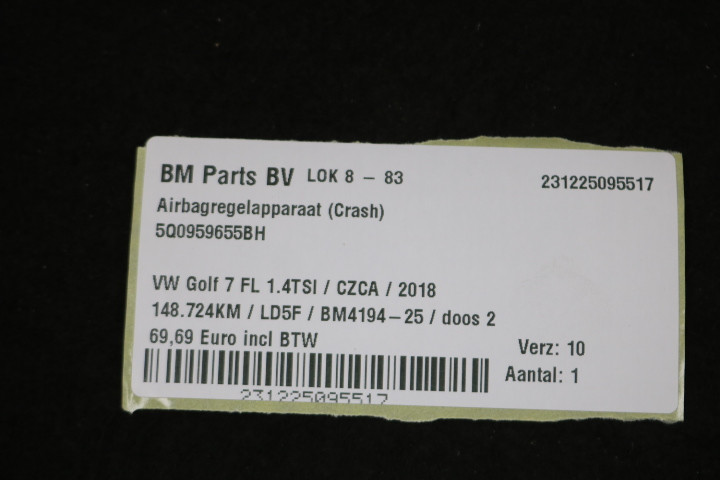 Terug / interieur / Airbags & Gordels / Diverse / Airbagregelapparaat (crash) VW Golf 7 FL