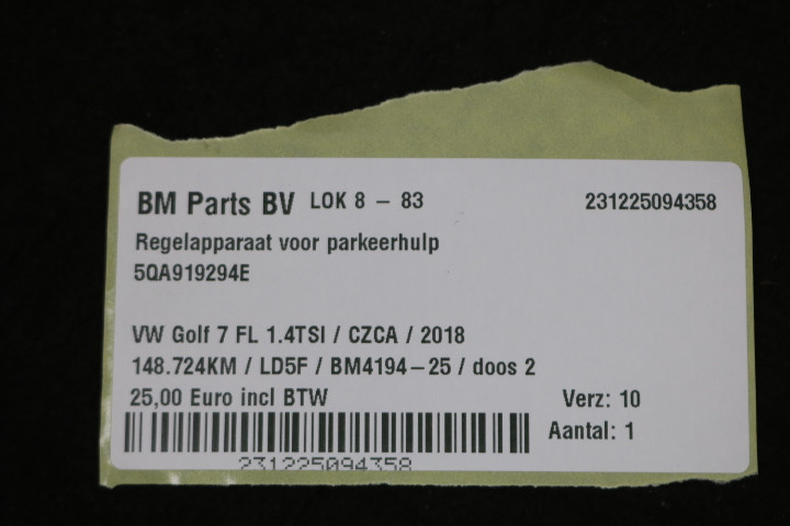 Regelapparaat voor parkeerhulp VW Golf 7 FL