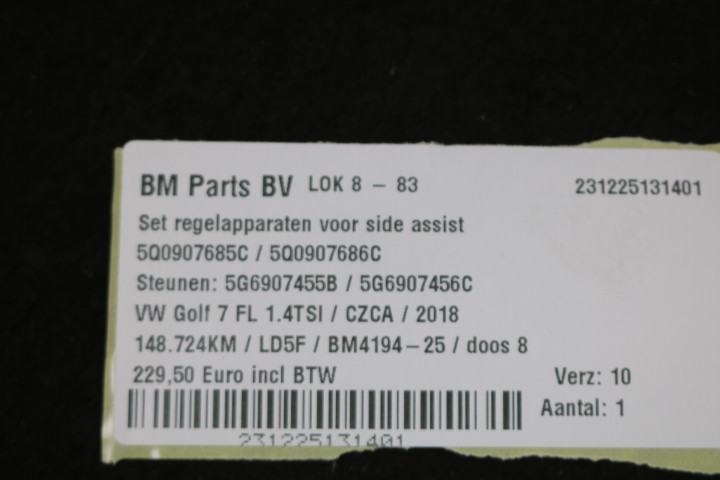 Set regelapparaten voor side assist VW Golf 7 FL