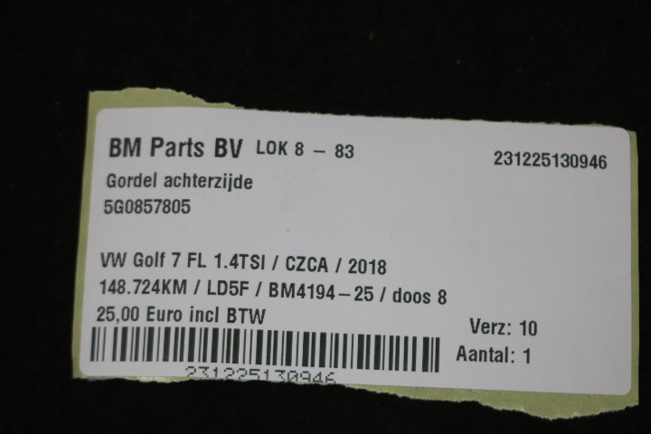 Gordel achterzijde VW Golf 7 FL