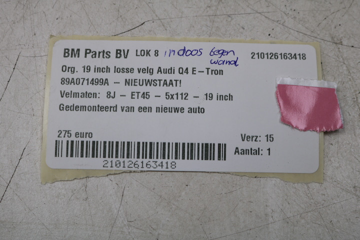 NIEUWSTAAT! ORIGINEEL! 1 losse 19 inch velg Audi Q4 E-Tron! 89A071499A
