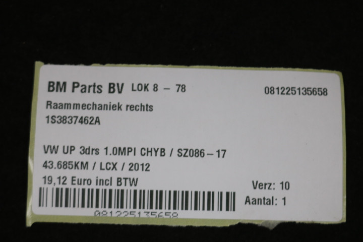 Raammechaniek rechts VW Up!