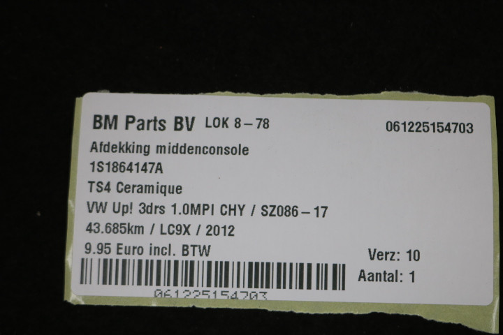 Terug / interieur / Middenconsole / Bekleding / Afdekking middenconsole VW Up!